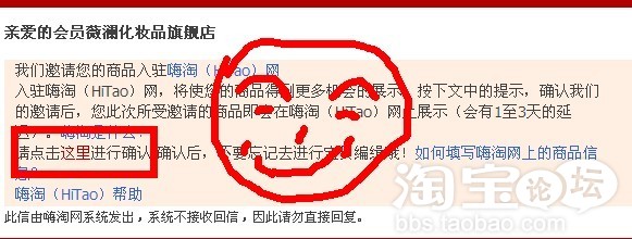 话说那天收到嗨淘的邀请 ,那真是相当的鸡动啊!!!!!! 接着赶紧点击了”这里“就傻了 白鸡动了“对不起,您不能确认的协议!谢谢!” 店里信誉一直不错的啊,难道是美容护肤品不能进去嗨淘吗? 跪求哥哥姐姐们告诉我原因~~~