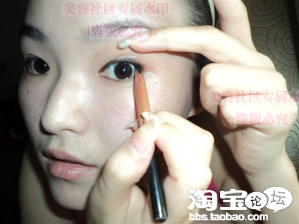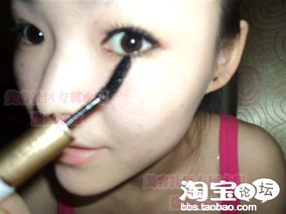 用眼线笔先画出内眼线,用一个手指把眼皮往上拉,在用眼线比描画出内眼线,个人认为内眼线非常重要,这样胡话,就又把眼睛放大了一倍呢