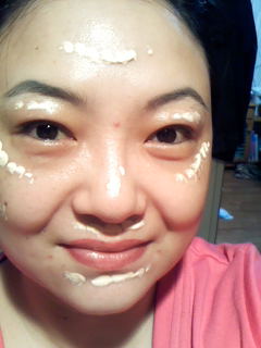 (隔离霜要均匀的涂抹在脸上哟*眼皮上最好也涂抹些。这样才有可能涂抹的更均匀,*这是我个人的习惯和喜好*)