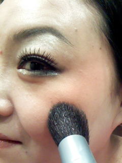 (打腮红也很有技巧de,自己微微笑起来的脸颊部分,在那里打上腮红就自然了赫赫*个人的习惯和喜好*)