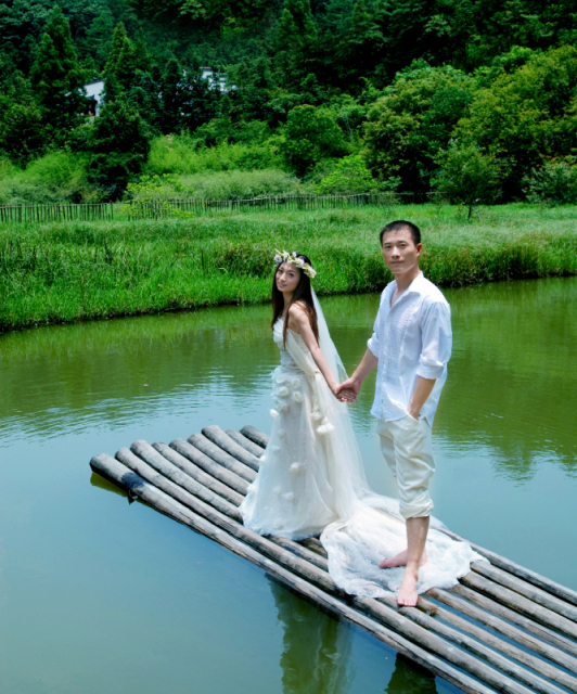 我跟老公是2008年8月8日结婚的,呵呵,因为老公是部队的,所以结婚那天也没能拿到结婚照,拍的时间太紧了,只有45天的假期,当军嫂还真不容易,又不能天天在一起,那也没办法,谁叫我喜欢呢,哈哈。