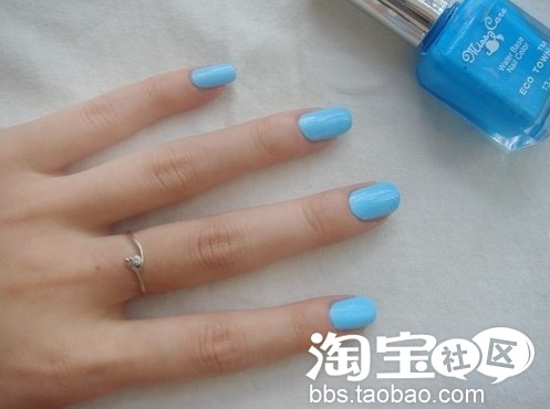 第一步:用蓝色指甲油打底