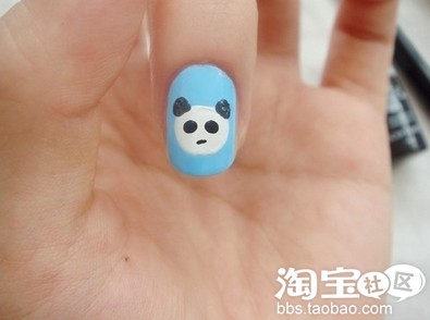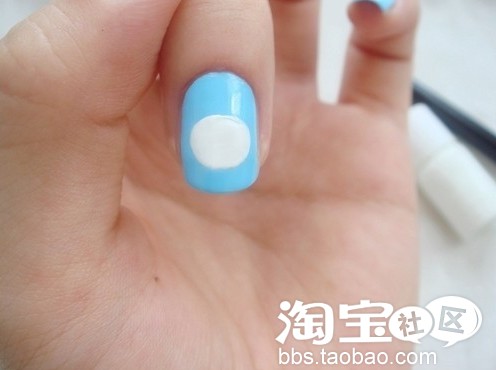 第二步:用白色浓缩指甲油画熊猫的圆脸