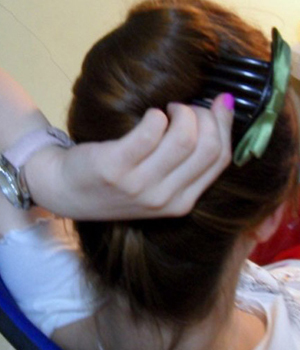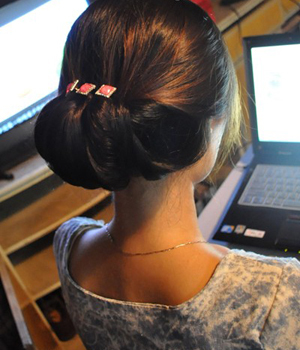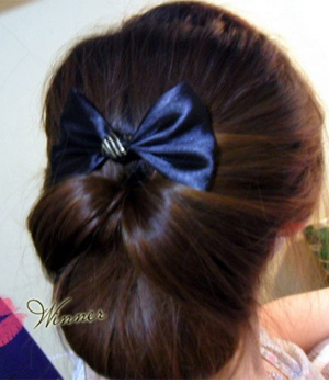 哈自己DIY的盘发叉子 上面粘了个蝴蝶结 哈哈叉子插进发髻