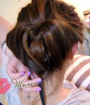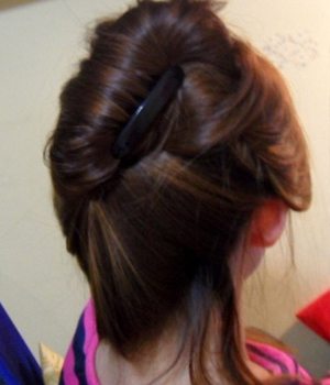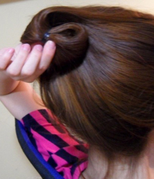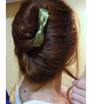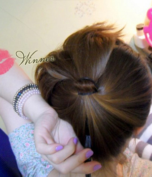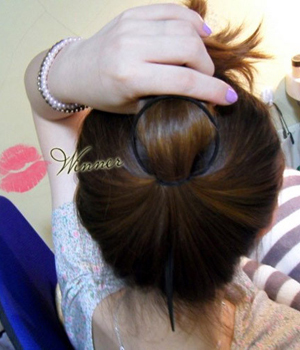 第3款 超优雅的挽起盘发穿法针从马尾中间穿过去