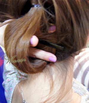 抓起发梢 往内卷起 要是头发比我长的MM