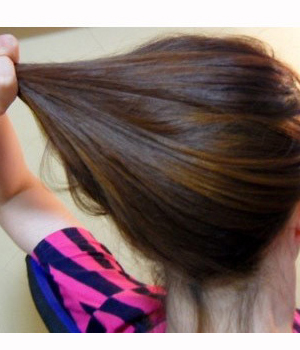 先将头发分成两半。