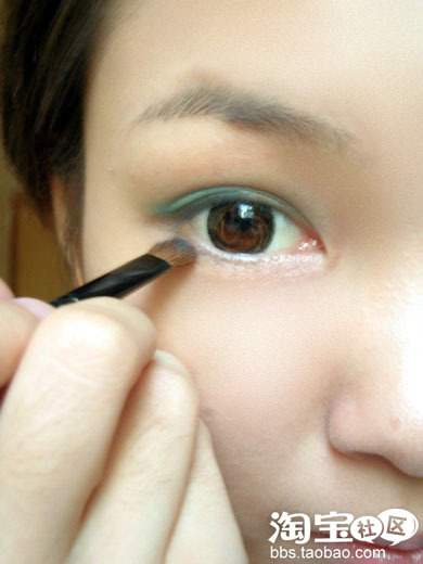 接下来就是下眼线,只要在眼睛后半部分画半条下内眼线即可。