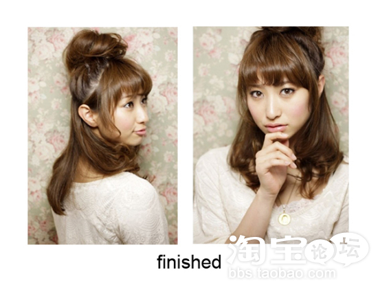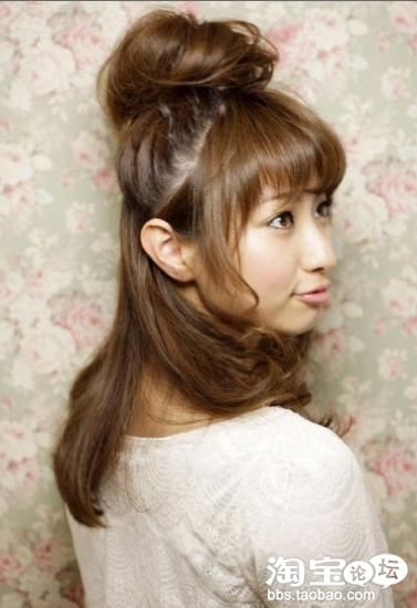 用手指插到头顶部分的头发里,轻轻向上抬,让头顶的头发根据的蓬松,如果喜欢的话还可以配上一个蝴蝶结发饰,会更加有女人味道喔~