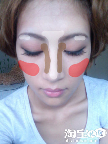白色为提亮部分,棕色为阴影部分,红色就是晒红啦。。