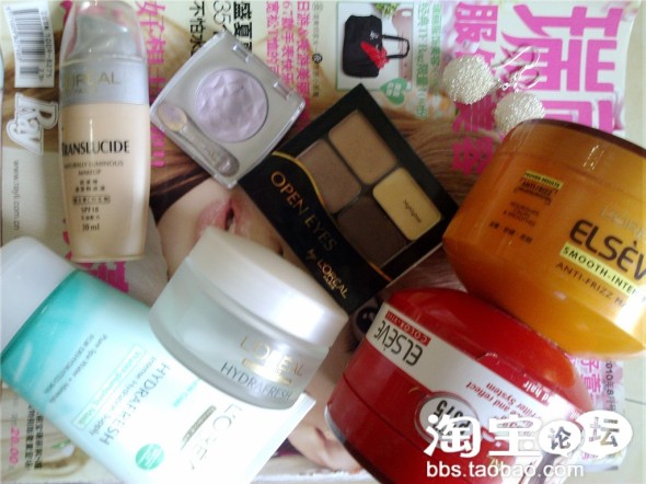 L'OREAL 欧莱雅 ,购于四面八方,四格眼影+面膜+保湿凝胶(马来西亚),发膜(菲律宾),粉底液+紫色眼影(广州),价格已经忘光光了。在马来西亚买欧莱雅的产品,价格比国内专柜低一半。