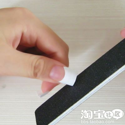 现在就用挫条磨成想要的形状吧,我喜欢方形的法式甲,就把边缘磨一下就好了