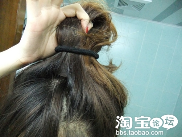 之后肯定会有一大处尾巴部分的头发留在外面!把它围绕一圈