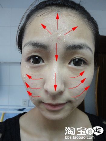 涂完后,按照下图顺序按摩轻轻5分钟(画的有点小恐怖