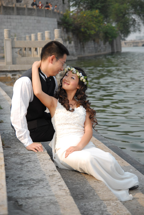 08年我就毕业了,他继续留在学校读博士,这个时候双方的父母都提出让我们结婚。当时似乎我有点不能接受,觉得一毕业就结婚太另类了。可是后来想想既然认定了,嫁给他也是早晚的事情。于是我们在我毕业之后的那个秋天就结婚了。