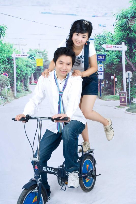 第二套:学生装(婚纱楼的人都说我俩分小,所以特意找了这样的学生装给我们充充)