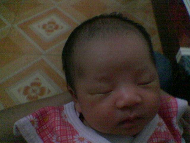女儿出生的第一天,皮肤红红的..