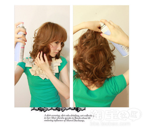 再接下来就是喷那个保护头发不受伤害和持久定型的液体,