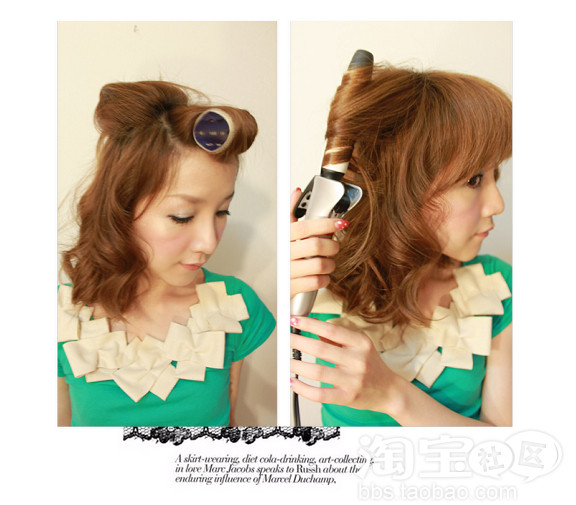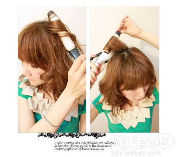 再把头顶的那束用卷发棒顺着卷一下,这样的弧度更美和持久!