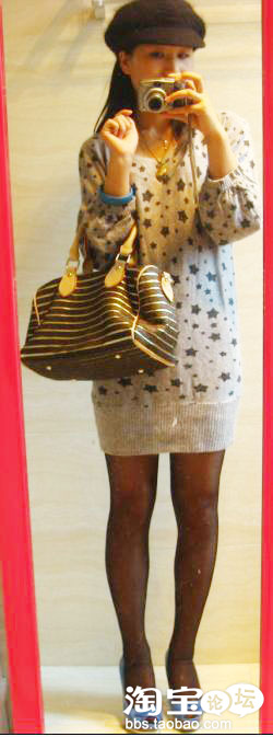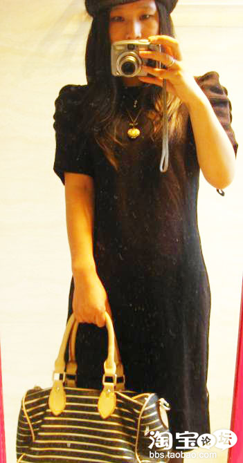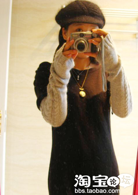 黑色毛绒的帽子 配黑色纯羊毛连衣裙 灰色长手套 简直就是金秋得优雅女郎哦 !!!