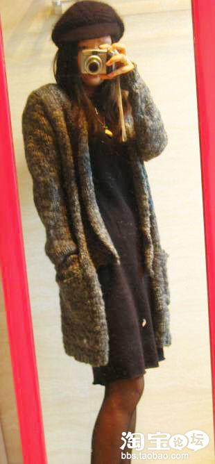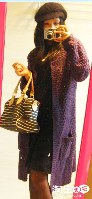 深秋的天气早晚温差比较大穿羽绒之类的衣服MM 们又会抱怨自己显得太臃肿,我们不妨为自己备一件厚款毛衣外套 即保暖又修身 不失为大日本原单 秋冬 手工粗棒针紫色加厚纯