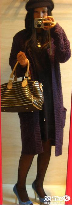 同样是紫色羊毛棒针外套 搭配黑色打底羊毛外套 却凭添了几分神秘和优雅哦