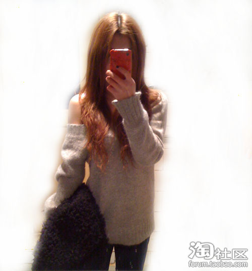 冬天姑娘们都少不了一件薄薄的打底毛衣 我的是兔毛大V领的 空调房内 脱掉外套