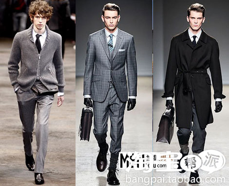 商务精英 参加高级的商务酒会,灰色对于商务男士来讲是个不二选择的颜色,因为它代表的就是品味、贵族的象征。在穿着方便,搭配一件白色衬衫或黑、灰色开衫都是很好的选择。