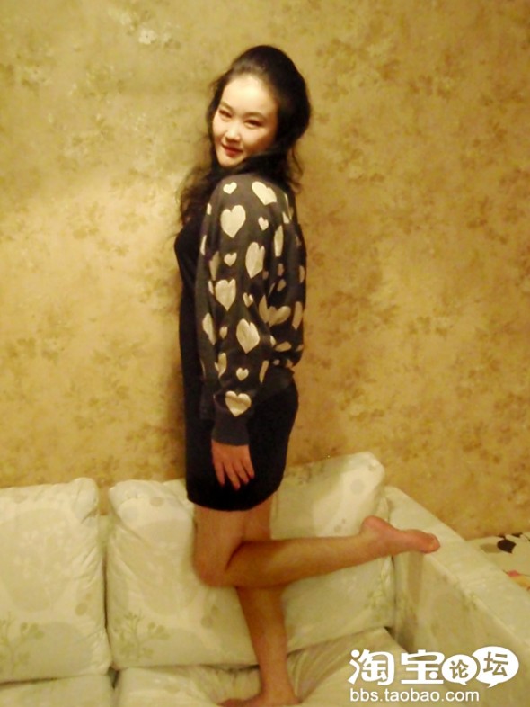 下面可以穿上丝袜,也可以不穿哦,我就没穿,嘿嘿