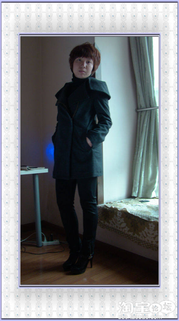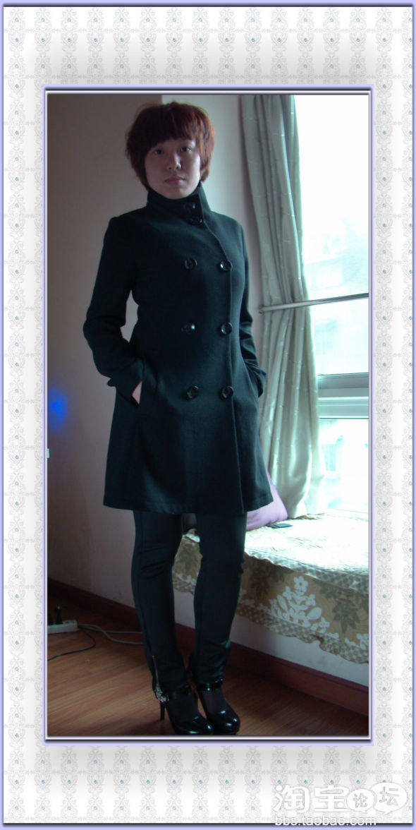选了军装风的毛呢大衣+黑色高领衫+黑色小脚裤+黑色高跟鞋,预备简单出门,满载而归。走帅气风格,在一堆女人中间是不是有点小不同?
