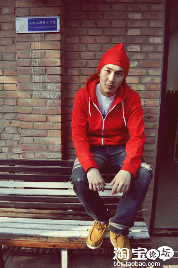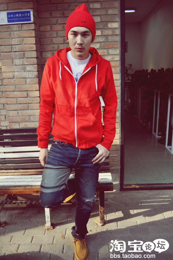 纯红色帽衫+破坏感的牛仔裤+发带,冠希当年最经典的造型。各位街头型男们一定要跟上!确实出彩!不得不佩服下冠希的搭配敏感度!