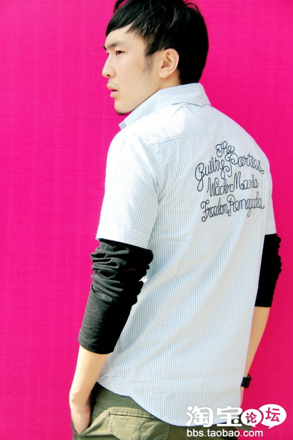 清爽的蓝白色刺绣条纹衬衫,内衬黑色打底,背后的刺绣细节让关注度上升!下面搭上一条工装裤,喜欢配饰的可以加上围巾、帽子等,立刻为整体造型加分!