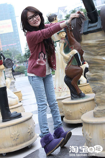 可爱的毛衫,也非常适合俏皮的你~~牛仔裤卷个小边,配上彩色UGG,也很不错哦