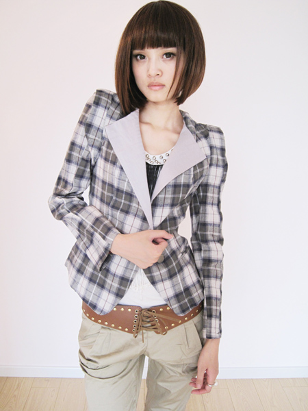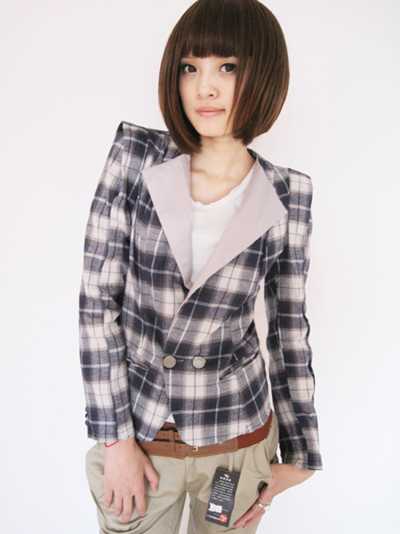 TOP,2 学院校服风格子修身西装+哈伦裤
