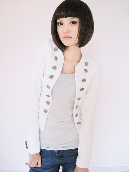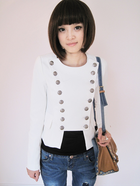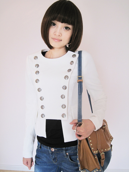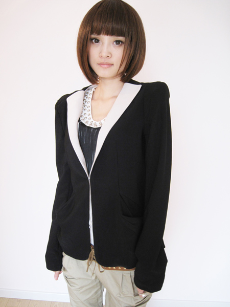 不得不爱的一款西装哦~白色的翻领和衣身颜色对比强烈