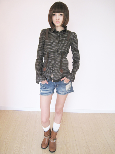 TOP,3 可拆卸背带衬衣+牛仔热裤