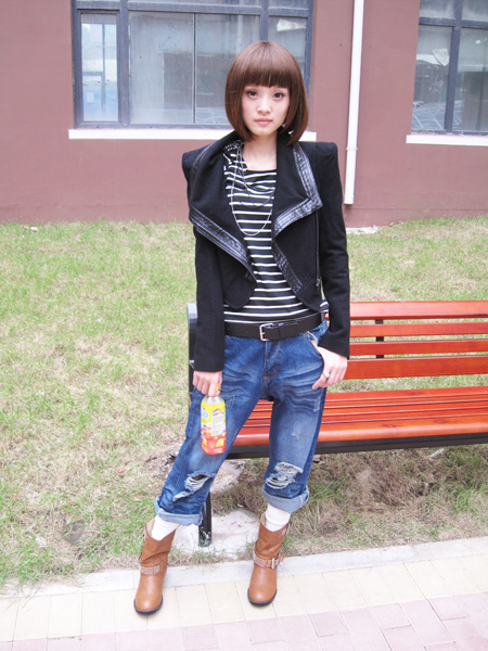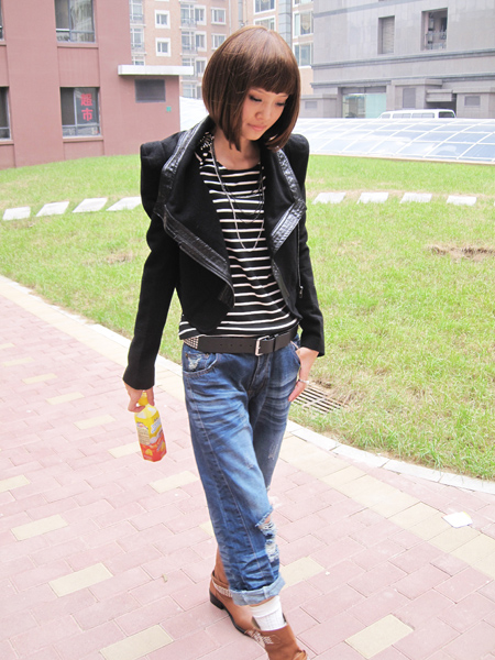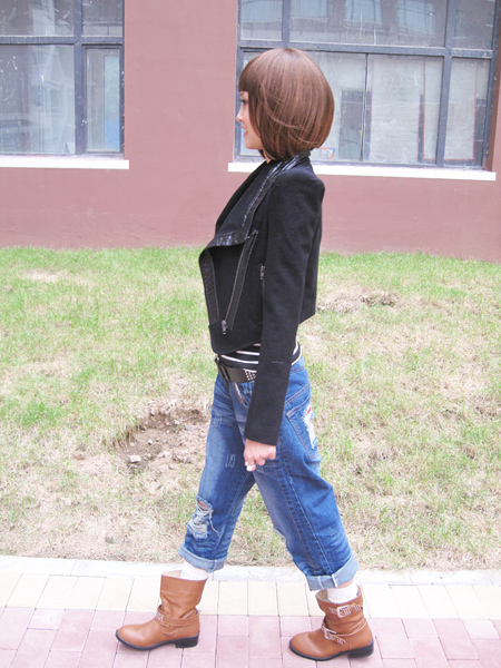 TOP,5 机车外套+破洞仔裤+机车短靴
