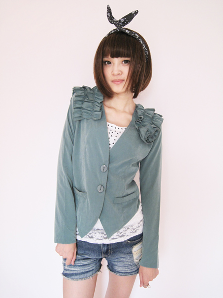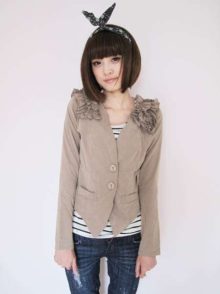 立体的木耳边和花朵的装饰,让整个衣服变得有灵气起来