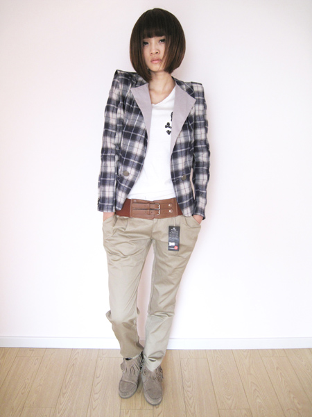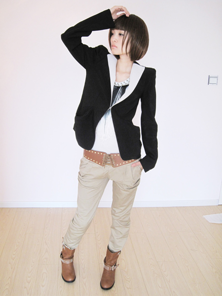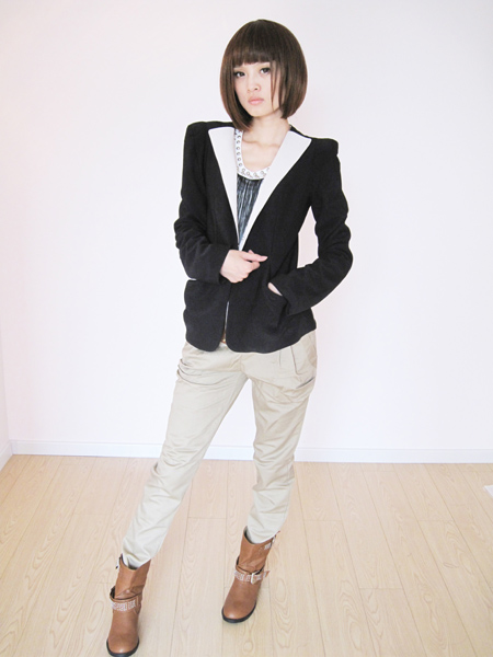TOP,4 垫肩BF版西装+卡其色休闲裤
