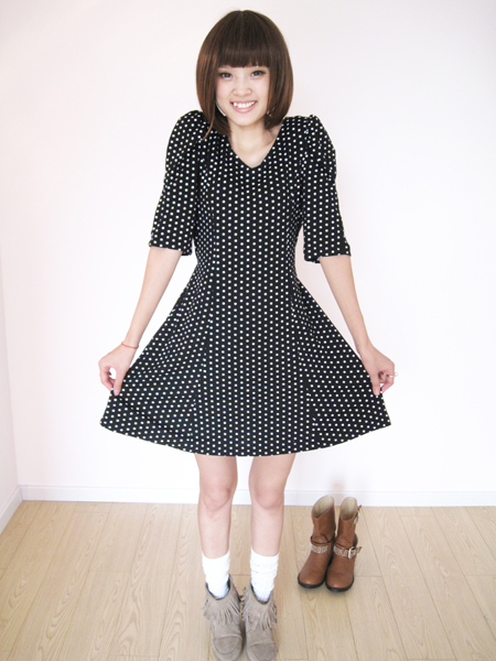 其实甜美的OP裙搭配机车短靴也很有味道,混搭嘛 喜欢就好