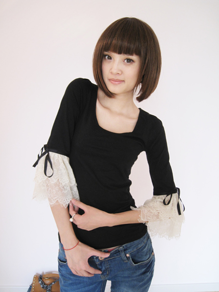 TOP,2 蕾丝孔雀袖修身T+仔裤