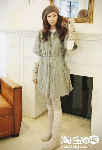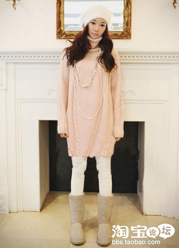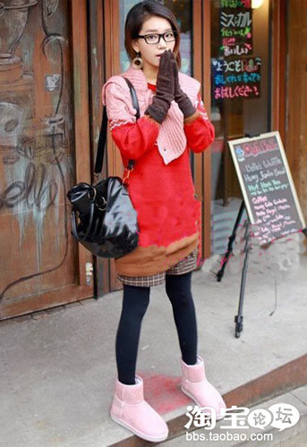刚刚出来社会的MM所迷恋的甜美风格。抢眼的红色搭配粉色雪地靴,让甜美风格带出冬日浪漫情怀。