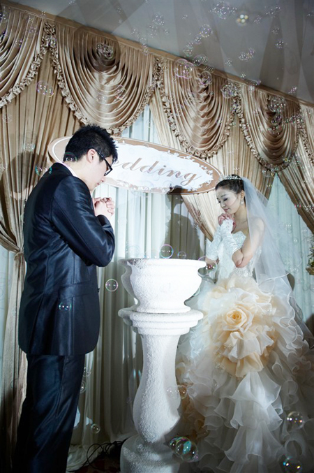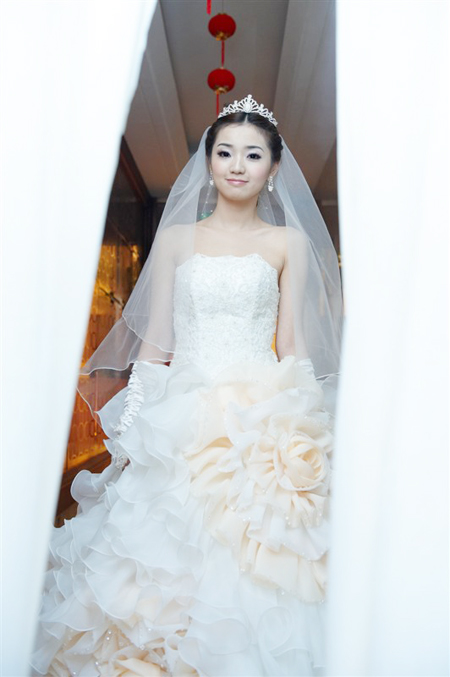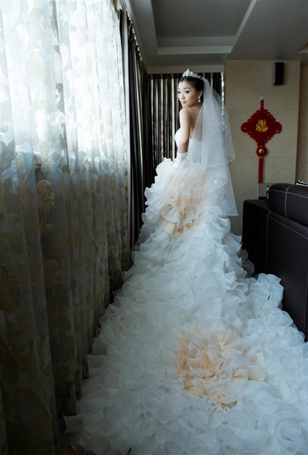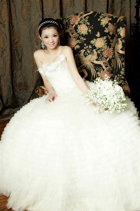 我的第一套白纱都是用纯白色的羽毛制作而成,很梦幻公主哦~