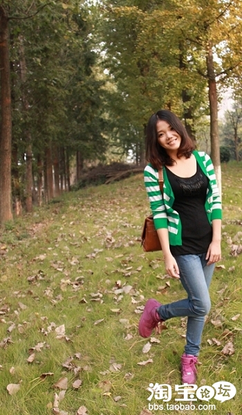 亮眼的条纹开衫配上糖果色的运动鞋,在人群中绝对是不会满没的