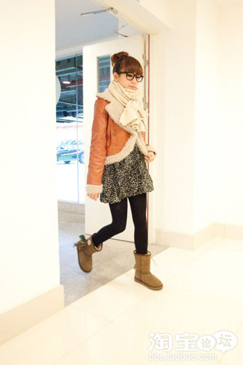 搭配一双UGG,套个亮色围脖
