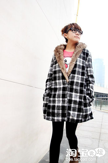 NO.8 黑白格大衣+卡通T