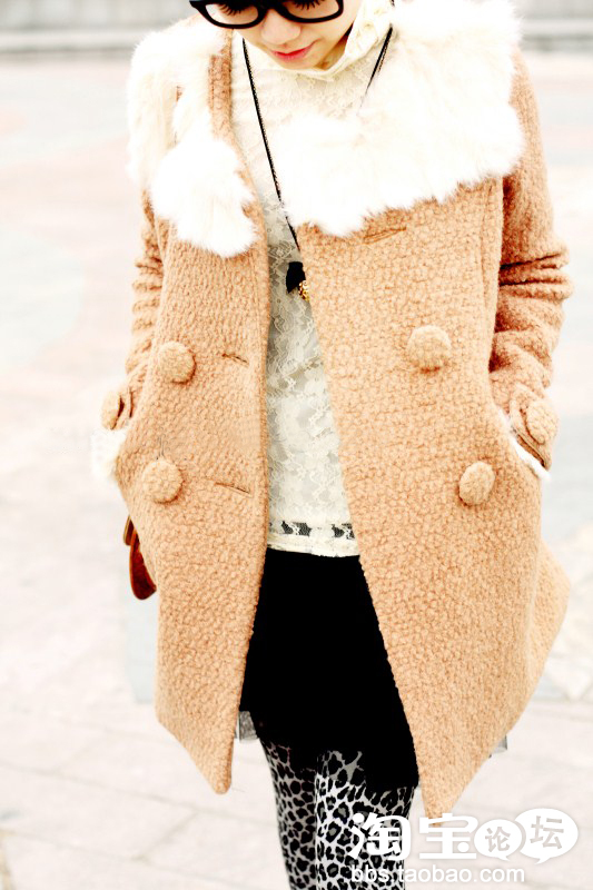 这款厚尼真兔毛领外套简单大方