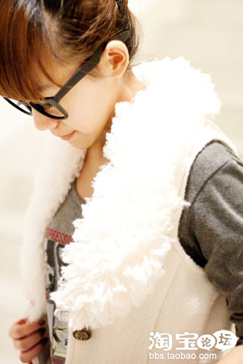 干净甜美,外套是毛毛领长背心