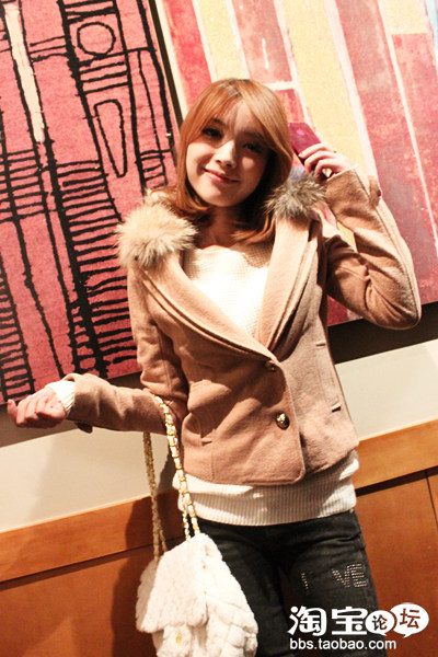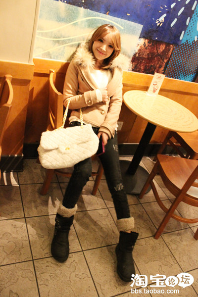 搭配女人款的白色毛毛拉链包 下面一条超级显身材的九分牛仔裤