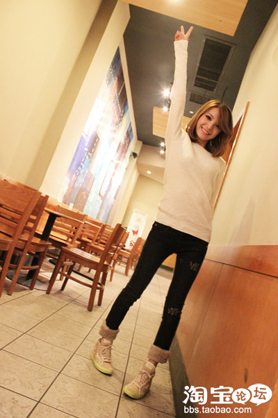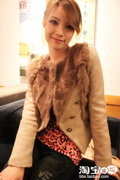 搭配二:兔毛皮草背心式披肩+zara打底衫+破洞牛仔裤+亚历山大靴